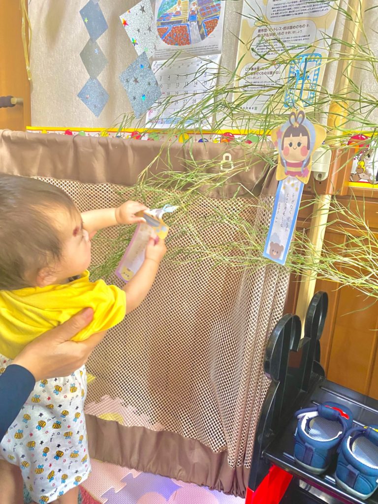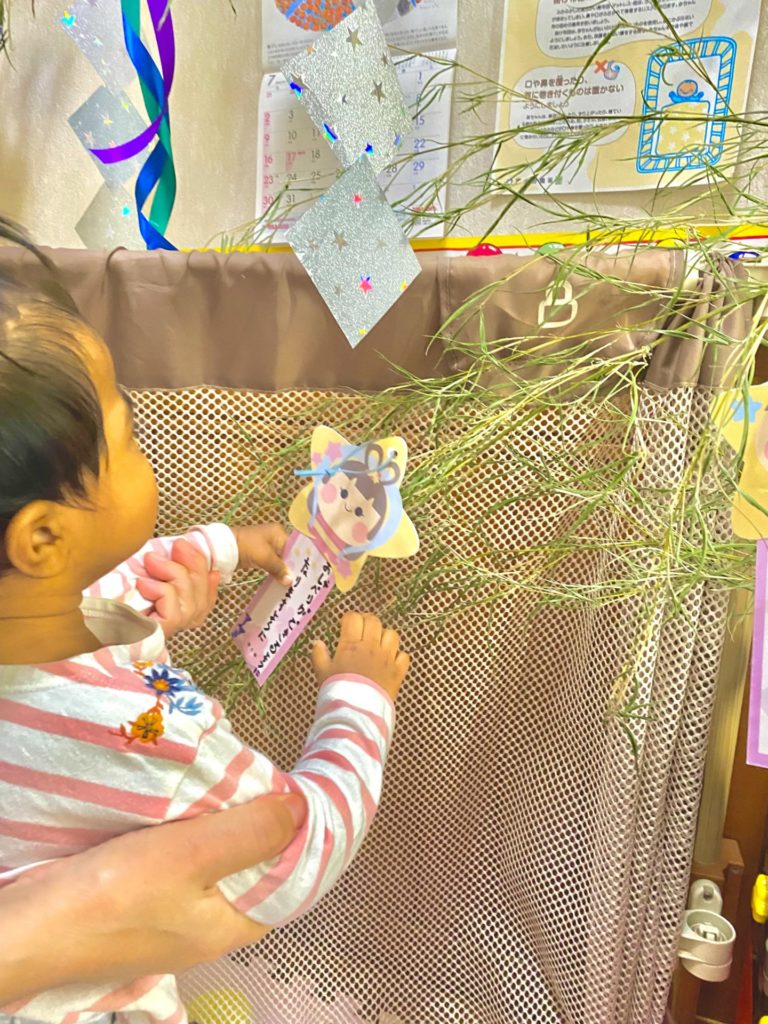みんなで作った七夕飾りやパパママと作ってきてもらった願い事を飾り付けました✨